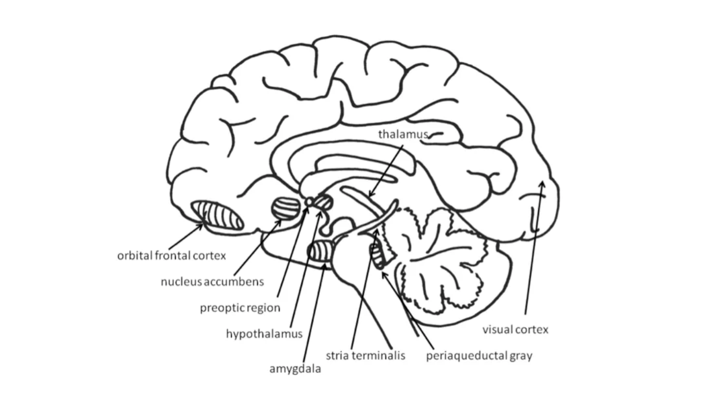 Orbital frontal cortex = A region of the frontal lobes of the brain above the eye sockets.